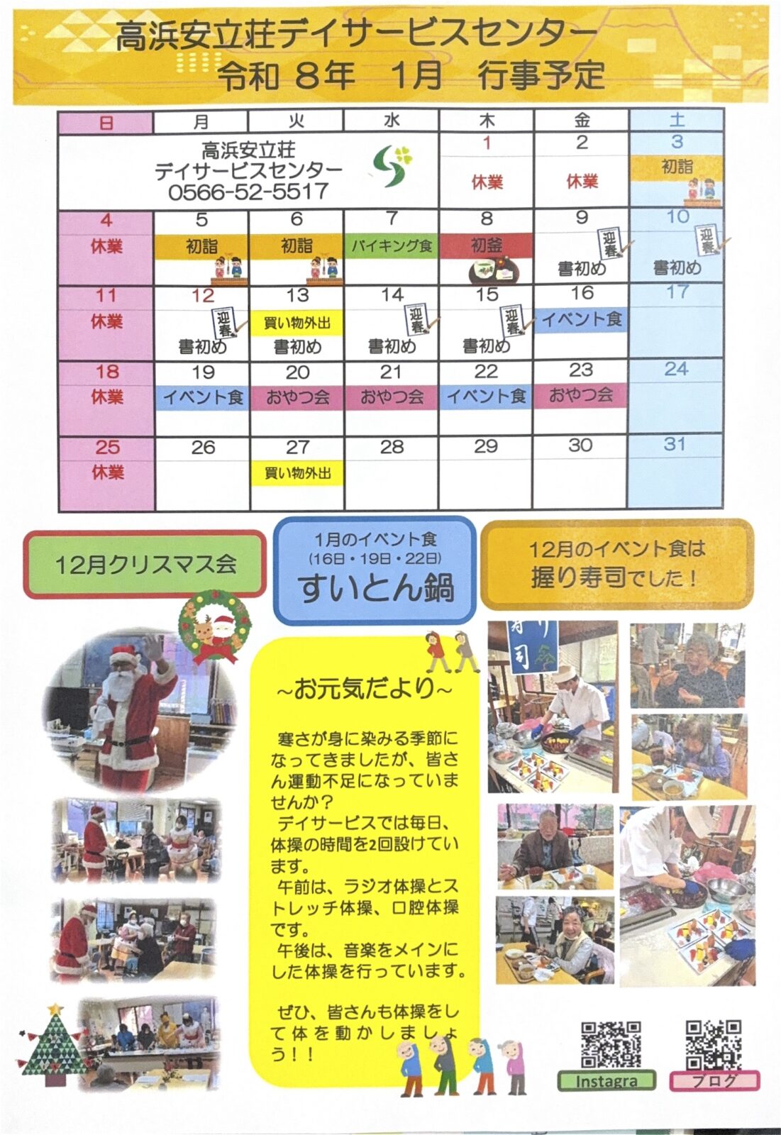 早いものでお便りはもう新年年明け、1月号です! 皆様、体調崩さず、休まずデイサービスに来てくださいね!! -